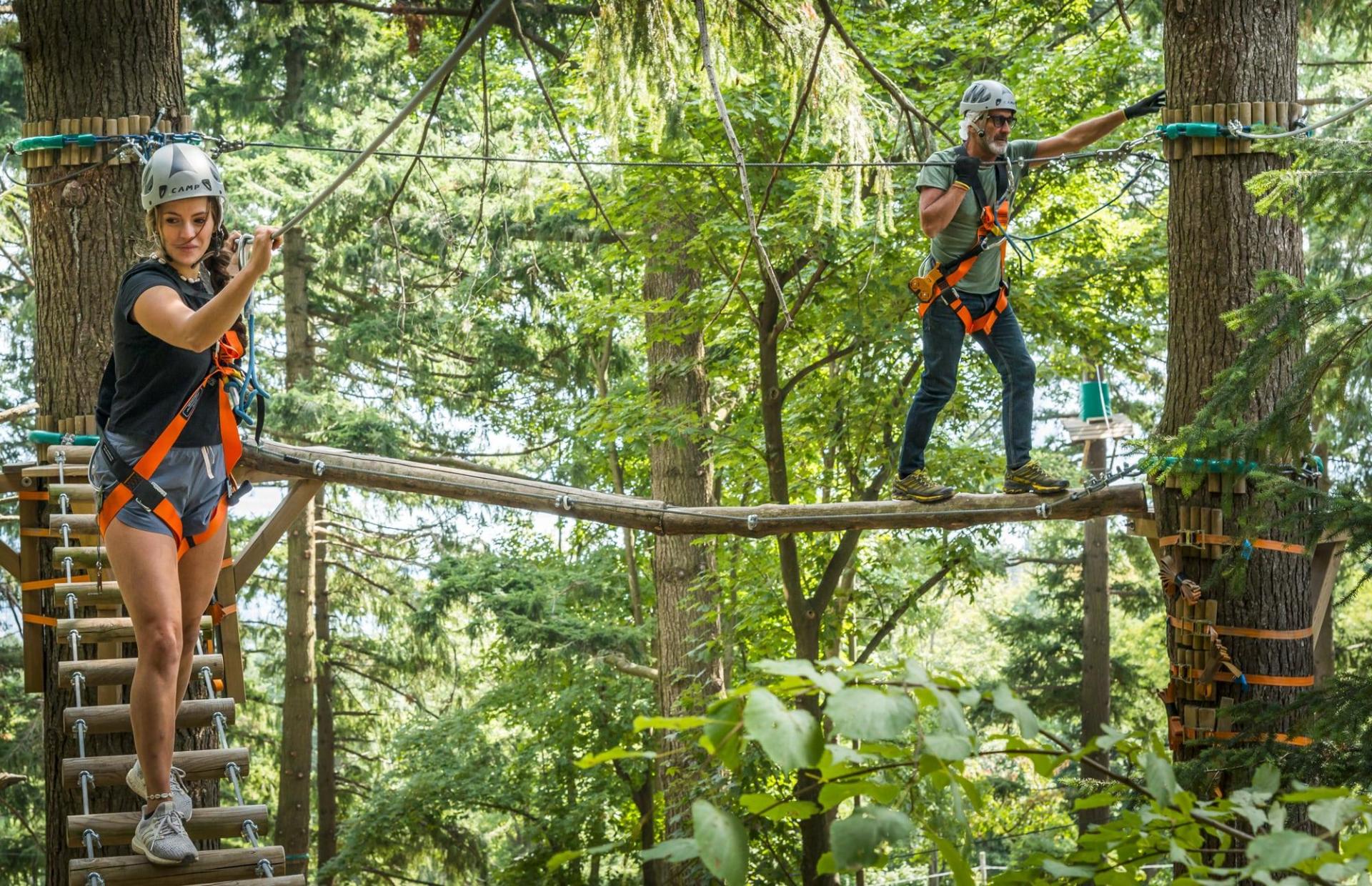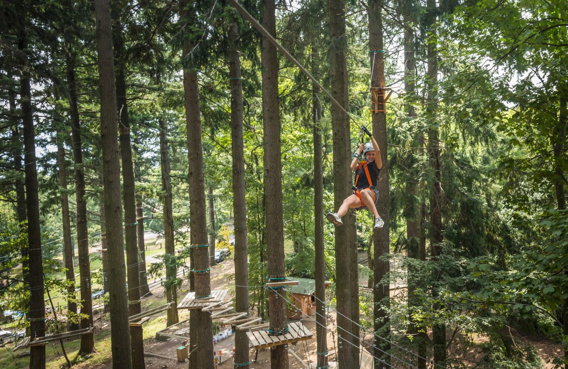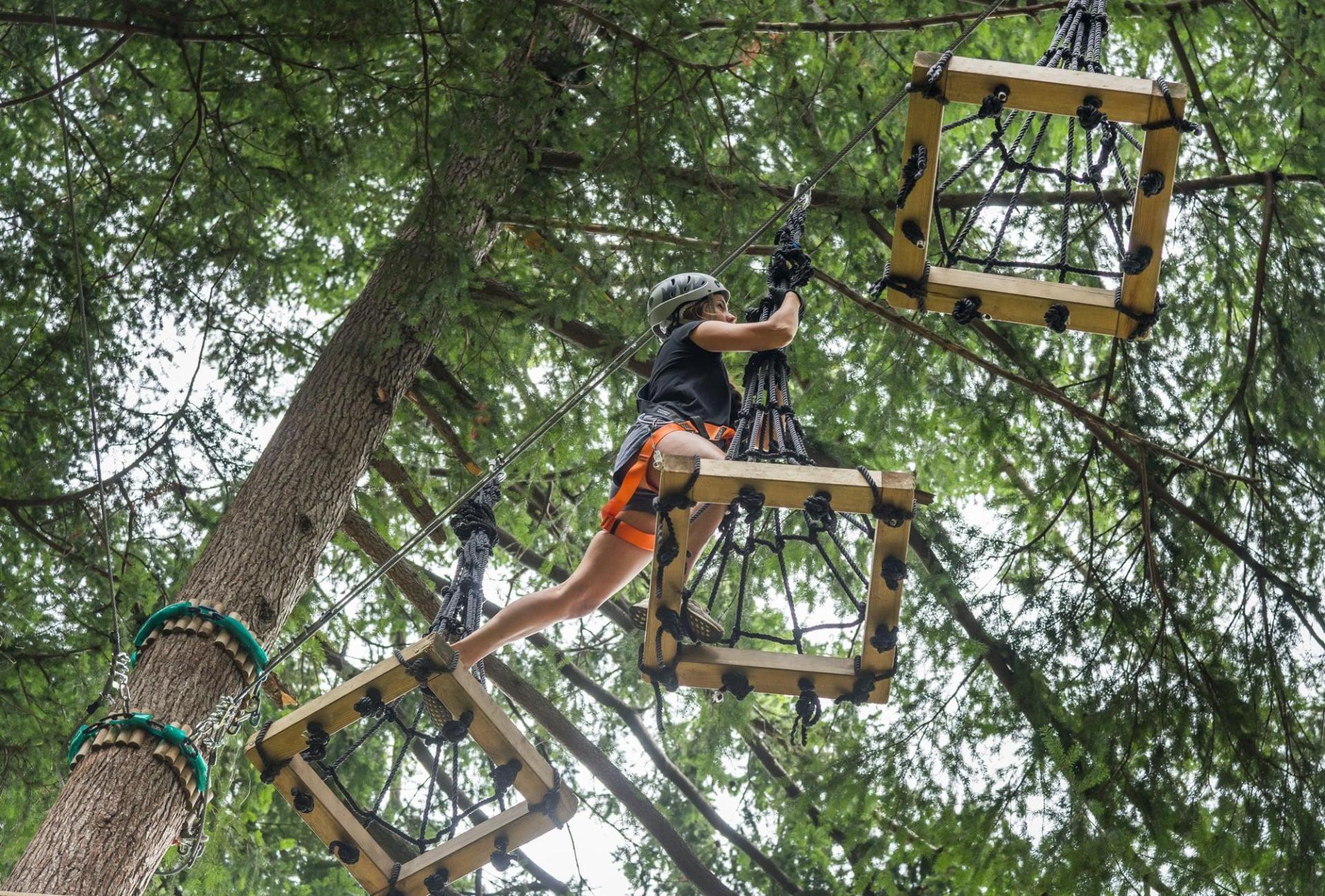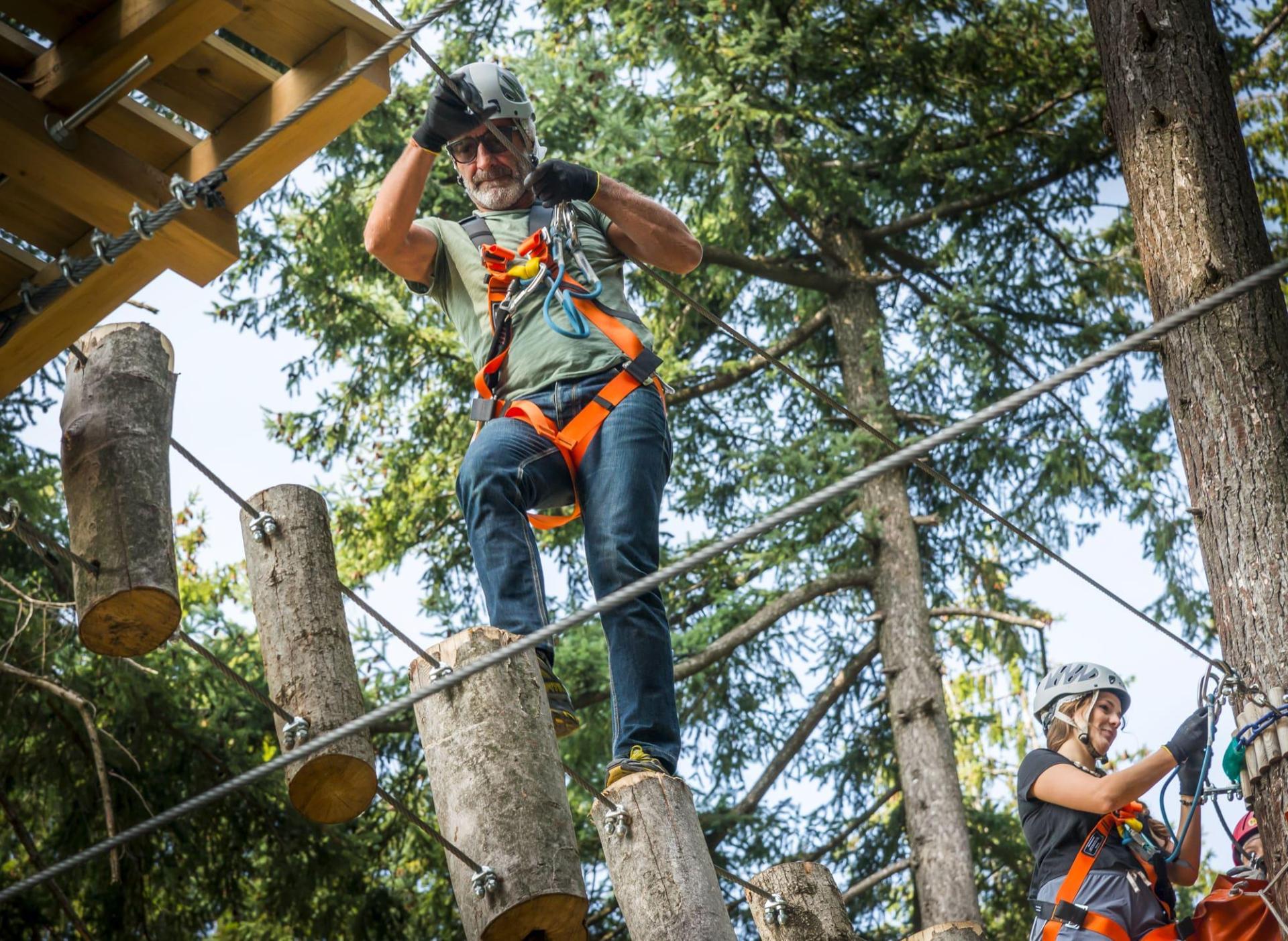 Con i suoi 103 passaggi regala sfide sempre diverse: dall’incredibile Salto di Tarzan, ai passaggi con assi meccaniche, carrucole e scale a chiocciola che si inerpicano su maestosi abeti americani altri fino a 40 metri e dal diametro superiore fino a 2 metri.