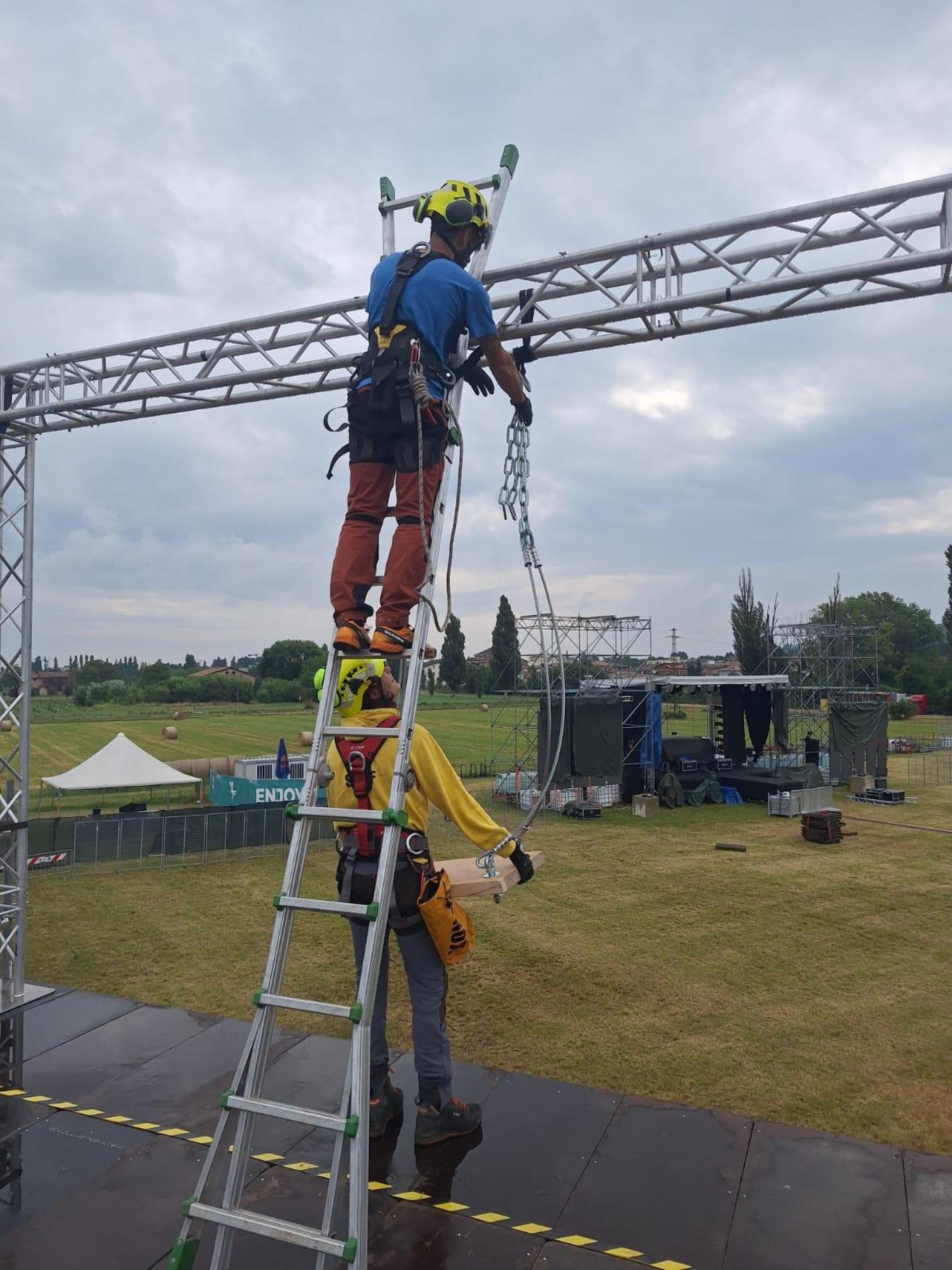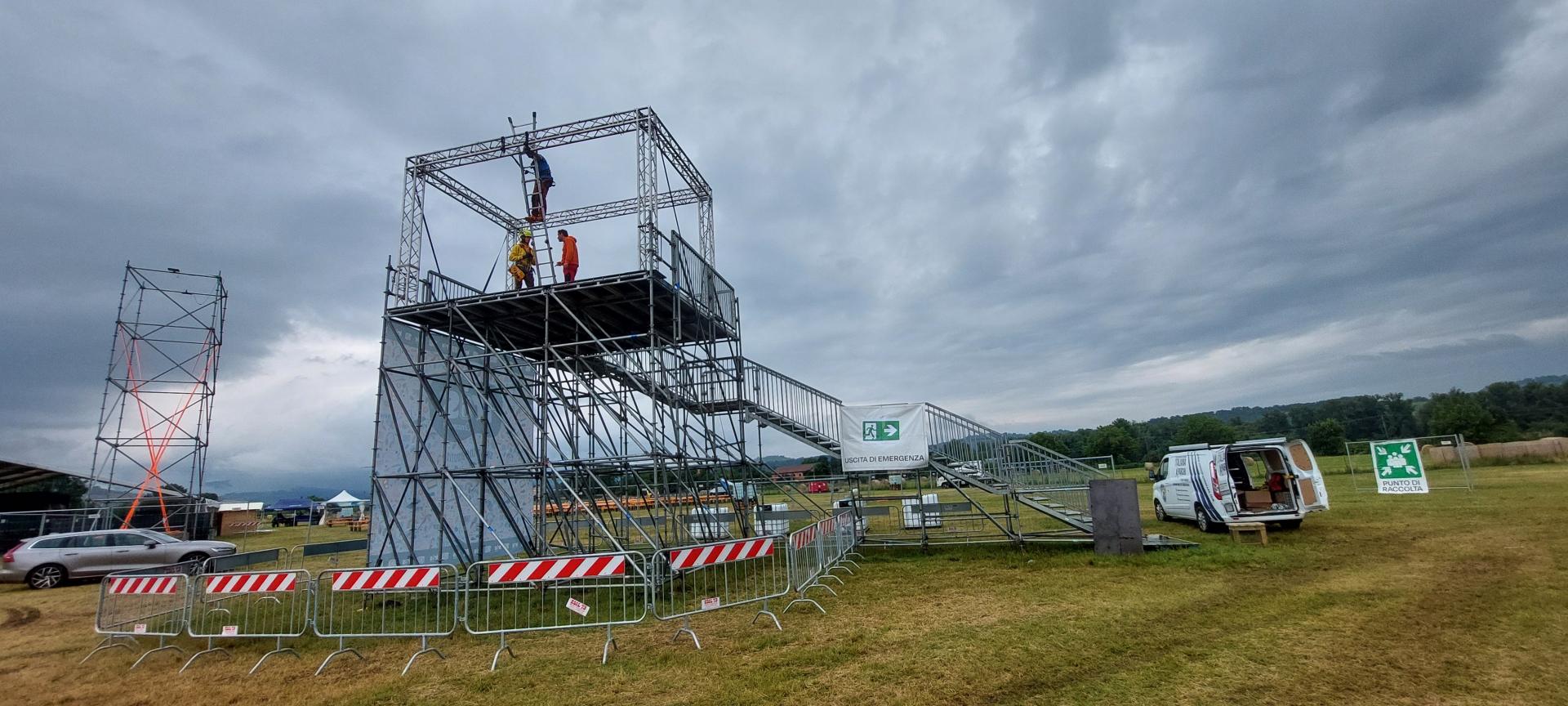 Abbiamo quindi ideato una soluzione "relativamente semplice": un'altalena. La sua particolarità risiedeva nell'essere installata su un palco alto 5 metri, permettendo alle persone di dondolarsi liberamente durante tutto l'evento e di provare il brivido e l'emozione di un'attrazione unica nel suo genere.