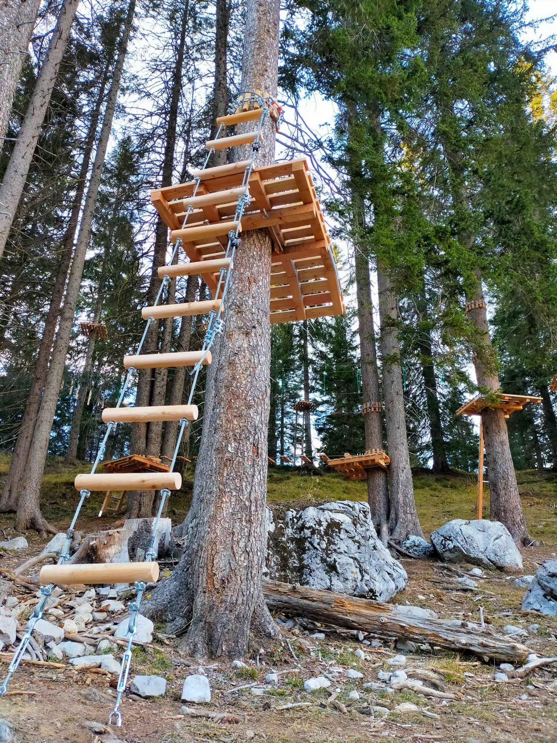 Parco avventura costruito con legno di larice italiano,